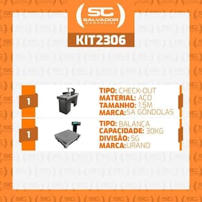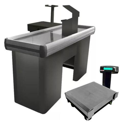 Caixa Supermercado Empacotador preto 1,50m Check Out e Balança 30kg Urano