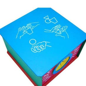 A criança poderá brincar inserindo 2 pares de peças dentro da caixa, depois de misturado, é colocado as mãos em cada uma das aberturas da caixa, e depois retira-se as peças iguais com as duas mãos. Fazer a mesma coisa colocando 4 pares, depois 6 pares e finalmente discriminar, entre as 16 peças, as iguais e retirá-las uma em cada mão. Colocar todas as peças na caixa, retirar 3 peças de texturas diferentes, colocá-las em cima da caixa e pedir a criança que pegue 3 peças iguais àquelas entre todas as que estão na caixa;