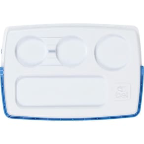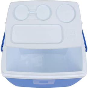 A tampa possui um design diferenciado com suporte para bebidas e sua alça ergonômica facilita o transporte.