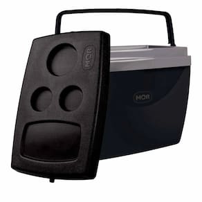 As Caixas Térmicas Mor possuem parte interna e externa em polipropileno injetado, tampa soprada e contam com isolamento em isopor. As dimensões internas da Caixa Térmica permitem que sejam armazenadas 50 latinhas de 350ml ou 7 unidades de garrafas pet de 2 Litros em pé ou deitadas. Sua tampa possui design que permite apoiar 3 latinhas e outros objetos na parte superior. Para facilitar o transporte, possui uma alça prática para você carregar sempre que desejar garantir as bebidas geladinhas para a reunião com amigos ou familiares.