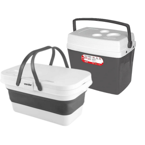 Kit composto de 1 Caixa Térmica 34L Botafogo Cinza + 1 Cesto dobrável Camping 16L Vonder
