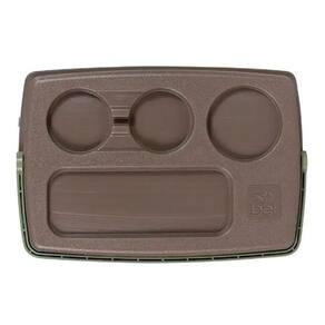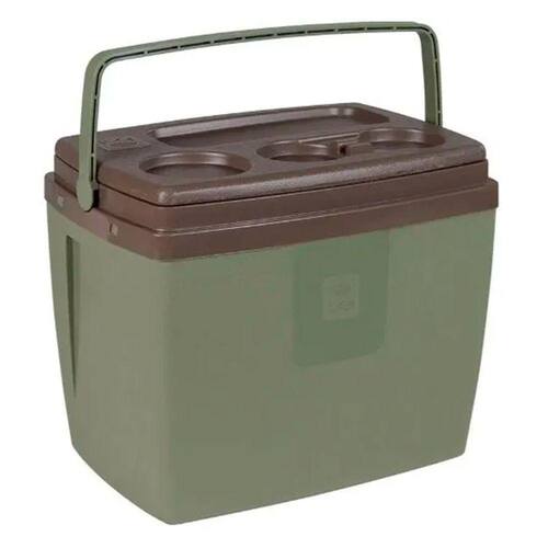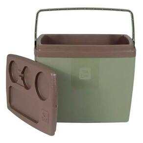 A tampa possui um design diferenciado com suporte para bebidas e sua alça ergonômica facilita na hora do transporte.