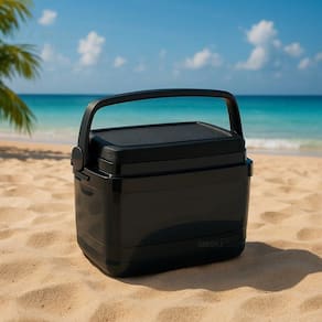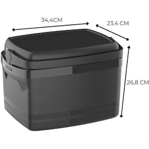 Esse cooler contém 12L. É Ideal para transportar os alimentos e bebidas em seus momentos de lazer. Para quem quer praticidade no seu dia a dia! Sistema prático de abertura e tampa removível com porta-copos numerados, Alças laterais embutidas e alça superior retrátil que trava a tampa. Pode ser usada como mesa de apoio auxiliar. Boa eficiência térmica (superior a 8 horas) . Capacidade 12 litros: 12 latas de 350 ml Comprimento 36 cm Largura 27 cm Altura 25 cm Peso aproximado: 1,15 kg Tempo de degelo total: 13 horas (Considerando 20% da Capacidade em gelo) Dicas e instruções de uso: - Nunca lave o produto por imersão, cuide para não danificar o isolamento térmico; - Não aplicar carga (peso) acima do especificado; - Produto atóxico; - Transportar sempre com a tampa fechada; - Não utilizar objetos abrasivos como esponja de aço, fibras abrasivas ou similares para sua limpeza; - Limpeza interna: se houver cheiro em seu interior, lave-o com água e sabão neutro; - Posteriormente, deve-se encher o produto com uma solução de água com uma colher de sopa de Bicarbonato de Sódio; - Limpeza externa: deve ser executada com sabão, ou detergente e esponja e água; - Não colocar objetos pontiagudos sem a devida proteção; - Os alimentos devem ser sempre embalados, evitando o direto com o interior da caixa; - A vida útil do produto está diretamente relacionada aos cuidados tomados durante seu uso, armazenagem e .