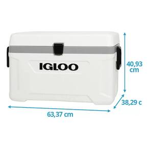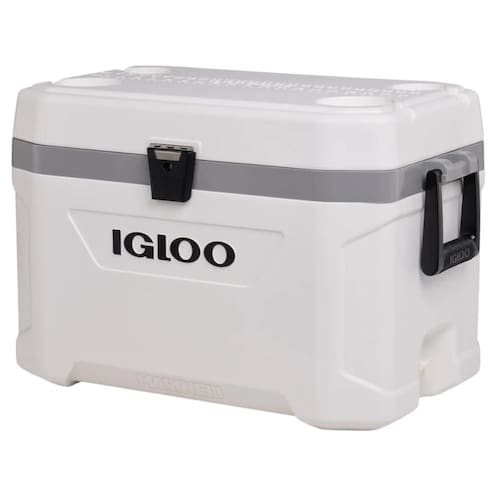 Especificações Técnicas: • Marca: Igloo • Modelo: Marine Ultra 54QT • Referência: 328730 • Capacidade: 51 Litros / até 76 latas (355 ml) • Material: Polietileno de alta densidade com isolamento Thermecool™ • Cor: Branco • Dimensões (C x L x A): 63,3 x 38,2 x 40,9 cm • Peso: 4,8 kg • Dreno: Embutido, com encaixe triplo • Alças: Retráteis e antiderrapantes • Porta-copos: Sim, na tampa (4 unidades com drenagem automática) • Fecho: Híbrido com dobradiças e ferragens em aço inox • Proteção UV: Integrada • Régua de medição: Moldada na tampa • Origem: Fabricado nos EUA • NCM: 39231090 • EAN: 34223328730