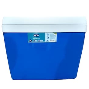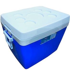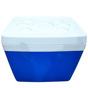 - Capacidade para 15 garrafas PET de 2 litros - Comporta até 110 latas de 350 ml - Possui alças laterais e porta copos na tampa - Possui uma divisória interna - Divisória pode ser utilizada como prateleira dentro da caixa - Cor: Azul