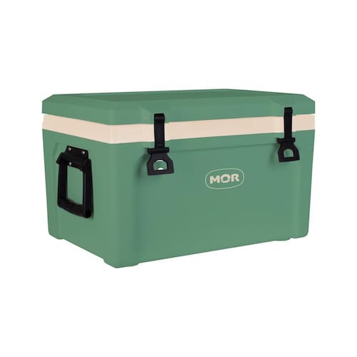 A Caixa Térmica Mor Summit 50L Verde é ideal para transporte seguro de alimentos e bebidas, contando com duas alças laterais e duas alças na tampa, contendo numa delas abridor de garrafa. É livre de BPA e possui um dreno para saída de água que permite que o líquido seja drenado facilmente sem exercer força. A tampa da Caixa Térmica Summit 50L suporta aproximadamente 150kg, servindo também como assento.
