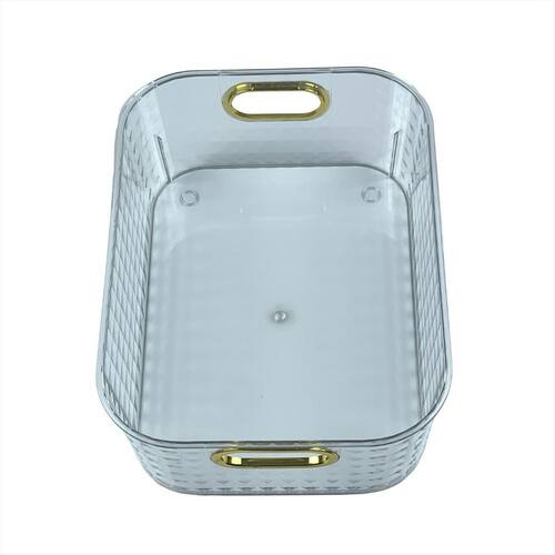 Organize seus ambientes com praticidade e elegância A cesta organizadora transparente com detalhe dourado é perfeita para quem busca aliar funcionalidade e sofisticação no dia a dia. Seu design moderno e minimalista valoriza qualquer espaço, seja na cozinha, despensa, banheiro, quarto ou escritório, deixando tudo no lugar certo e ainda agregando charme à decoração. Com estrutura resistente, é ideal para armazenar brinquedos, mantimentos, cosméticos, itens de higiene, acessórios e muito mais. A transparência facilita a visualização dos conteúdos, enquanto as alças douradas conferem um toque sofisticado, tornando o produto não apenas útil, mas também um item de estilo para sua casa. Garanta já a sua e transforme sua organização em uma experiência prática, bonita e eficiente Especificações Técnicas Material: PET 173g Tamanho: 28cm x 20,5cm x 9,8cm Cor: Transparente com detalhe dourado Uso indicado: Organização de ambientes diversos cozinha, quarto, banheiro, escritório, lavanderia etc. Diferenciais: Transparência para fácil visualização dos itens Alça reforçada com acabamento sofisticado em dourado Design moderno e versátil Imagens ilustrativas. Marca: Não Informado Ean: 7908148597150