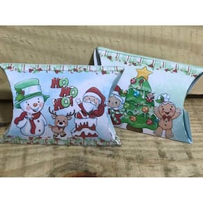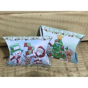 A Caixinha Travesseiro Almofada Natalina é perfeita para tornar seus momentos festivos ainda mais especiais. Com medidas de 14x18cm aberta e área útil de 8x8,5cm, essa caixinha é ideal para acomodar bijuterias, bombons, bis e pequenas peças.