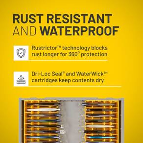 - Projetado para conveniência: possui um sistema EZ Label para facilitar a organização e uma tampa de policarbonato transparente DuraView para que você possa identificar rapidamente o conteúdo.