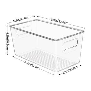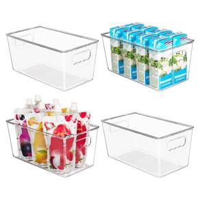 YIHONG Caixas organizadoras transparentes para despensa, pacote com 4 caixas de plástico para armazenamento de alimentos com alça para cozinha, geladeira, freezer, armário, gaveta - Torne o armazenamento mais simples — Estas caixas de armazenamento transparentes são versáteis o suficiente para caber facilmente em sua geladeira, geladeira, prateleiras e armários, facilitam seu armazenamento e ajudam a manter sua geladeira, geladeira e despensa com aparência limpa e organizada. - Multiuso: este conjunto vem com 4 caixas do mesmo tamanho, mede 23,5 x 13,2 x 11 cm; essas caixas de armazenamento são ótimas para armazenar suas bebidas, frutas, legumes, iogurtes, produtos embalados, alimentos enlatados, alimentos para bebês, alimentos embalados, condimentos, especiarias, cervejas engarrafadas, pequenos brinquedos, produtos de higiene pessoal e muito mais. - Armazenamento funcional para qualquer espaço — Ideal para geladeira, geladeira, prateleiras de despensa, armário, cozinha, banheiros, lavanderia, quartos sob a pia, garagens, salas de estar, salas de artesanato, escritórios e outros lugares. Você pode decidir onde usar esses compartimentos organizadores de armário de acordo com sua necessidade. - Visão clara e empilhável: o material transparente visível facilita a visualização do que cada caixa de armazenamento contém, facilitando a localização de seus itens e trazendo mais conveniência para sua vida diária. Empilhável para maximizar o espaço quando não estiver em uso. - Fácil de transportar com alças embutidas — as alças laterais de fácil aderência permitem que você puxe facilmente as caixas para fora e selecione o que você precisa. Feito de material de polietileno durável sem BPA premium. Basta lavar com água morna e sabão, não coloque na máquina de lavar louça.