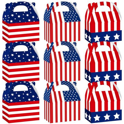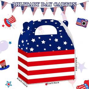 Material: papelão branco Tamanho: 15* 9* 8 cm Peso: 180 g Papelão de alta qualidade: feito de papel cartão branco espesso, garantindo durabilidade, estabilidade e uso ecológico para várias guloseimas ou pequenos presentes. Design de tema patriótico: apresenta combinações de cores vermelho, branco e azul com padrões de estrelas e listras, simbolizando o espírito americano festivo. Tamanho perfeito: cada caixa mede 15x9x8cm, fornecendo espaço suficiente para biscoitos, doces, lanches ou pequenas lembranças. Alça conveniente: design dobrável com alça embutida para fácil transporte e montagem rápida, adequado para adultos e crianças. Ideal para celebrações: perfeito para o Dia da Independência, Dia dos Veteranos, Dia da Memória ou festas e reuniões com temas patrióticos.