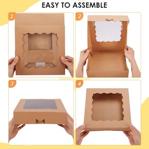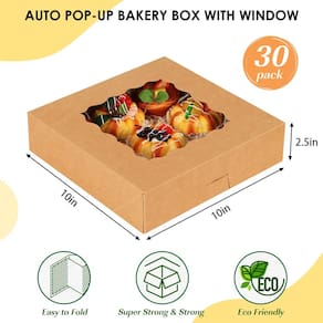 30 caixas de torta com janela de 25 x 25 x 6 cm - Conjunto de super valor: 30 caixas de torta com janelas. O tamanho de cada caixa é 25,4 x 25,4 x 6,3 cm - Design perfeito: a caixa tem uma janela transparente para exibir seus deliciosos biscoitos, trufas, doces, cupcakes, doces, biscoitos, etc. Tornando seus presentes difíceis de resistir - Cartão resistente: estas caixas de padaria são feitas de papel de grau alimentício e são sólidas e contínuas - Fácil de montar: a caixa de biscoito é plana e pré-dobrada para facilitar a montagem. Fácil de desmontar e armazenar para uso posterior - OCASIÕES APLICÁVEIS: Estas caixas de torta marrom são excelentes para usar como um presente criativo para seus convidados em qualquer evento, festas de aniversário, casamento, celebrações de férias e também podem ser usadas para vender e exibir suas criações de confeitaria