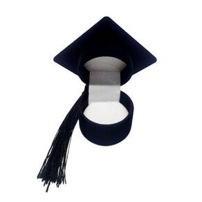 Descrição do produto Estojo em Veludo. Formato de Capelo. Chapéu de Formatura para anel ou brinco pequeno.