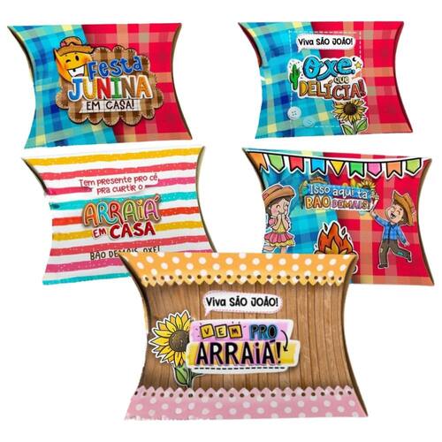 Caixinhas 50 Unidades Festa Junina - Surpreenda com Criatividade Dê um toque especial à sua Festa Junina com nossas 50 Caixinhas temáticas. Com 5 estampas diferentes e vibrantes, elas são perfeitas para embalar docinhos, lembrancinhas ou pequenos mimos. Feitas em papel offset 180g, possuem um design criativo em formato de travesseiro que encanta a todos. O kit inclui: 50 Caixinhas desmontadas, sendo 10 unidades de cada estampa Dimensões: Aberta: 14cm x 18cm Área útil: 8cm x 8,5cm