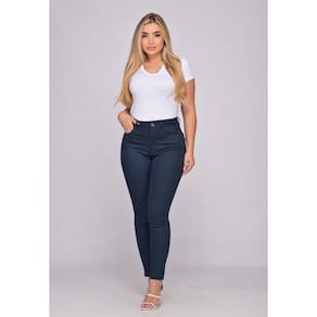 Calça em sarja lycra, modelagem que se ajusta ao corpo.