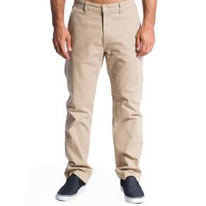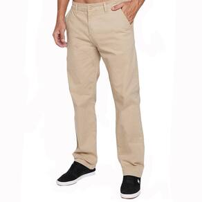 Calça Billabong feita em sarja, com bolso faca, fechamento em botão, bolsos traseiros e etiqueta costurada na parte traseira da calça.