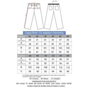 Calça com elástico na metade da cintura (cós meio elástico), permite um maior conforto.