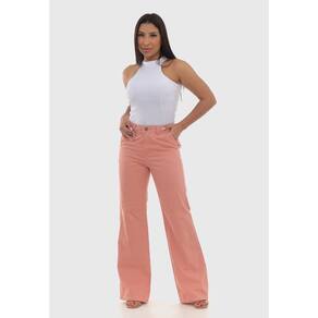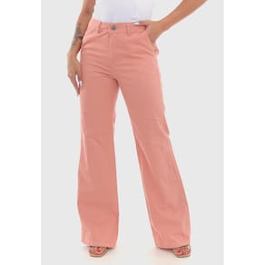 Calça confeccionada em sarja. A peça modelo wide leg possui cintura alta, cós com passantes aplicados, dois bolsos frontais e dois bolsos posteriores. Comprimento longo, caimento amplo e acabamento pespontado. Fechamento frontal por zíper e botão.Tecido 100% algodão.