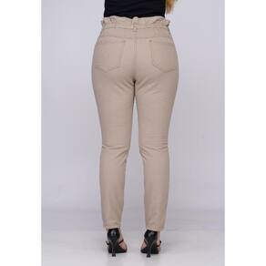 O modelo Clochard possui cintura alta, com elástico e passante no cós, com botão e ziper frontal e bolsos frontais.
