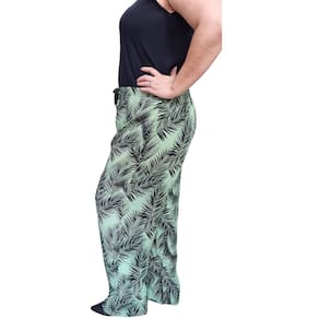 Leveza, estilo e personalidade definem a Calça Feminina Estampada Pantalona Rodher Verde.