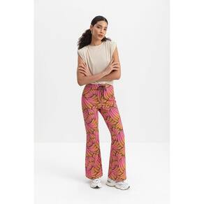 Calça Feminina Flare Em Moletom Estampada Essendi Marrom - Marrom - M