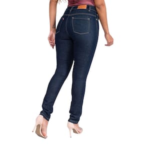 A Calça Jeans Cigarrete Feminina Revanche Jessia tem cintura alta e cós com passantes para cinto. Traz bolsos frontais e traseiro.