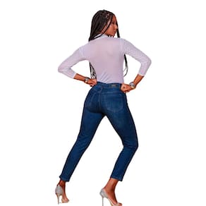 MODELAGEM: MomCOMPOSIÇÃO: Algodão/ElastanoTIPO DE TECIDO: JeansMEDIDAS MODELO Altura: 1,78 cm Manequim: 36 Busto: 94 cm Cintura: 65 cm Quadril: 98 cmLAVAGEM: Azul Escuro
