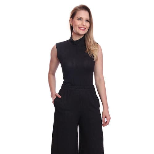 Calça feminina pantalona social com bolsos confecciona em tecido canelado.