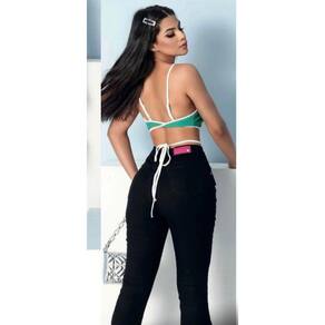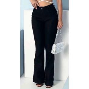 Calça Feminina Flare, Preta, confeccionado em tecido jeans, fechamento em zíper e botão, simplesmente estilosa.