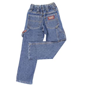 Calça Infantil Masculina da marca Dock's com mais qualidade que nunca! Este é o modelo Infantil Carpinteira, perfeita para as diversas situações que seu pequeno irá passar! Esta peça é fabricada em tecido jeans 60% Algodão e 40% Poliéster na cor Azul Escuro, possui 3 bolsos na frente, 1 na lateral e 2 atrás em modelo tradicional com costuras, alça para portar utensilhos, elastico na cintura moldando conforme o corpo o da criança, rebites de metal e botão personalizado, realçando a qualidade do produto. Uma calça que é super resistente e que pode se confiar.