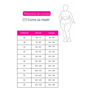Medidas do Modelo: Altura: 160cm, Cintura: 71cm, Quadril: 99cm