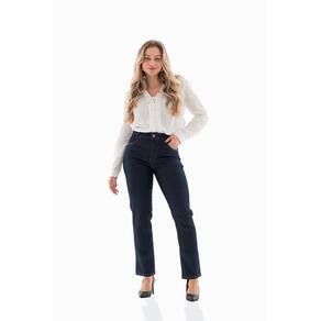 A calça reta possui cintura alta e modelagem linear que se mantém reta ao longo de todo o comprimento, conferindo um estilo sofisticado e moderno. Com elastano em sua composição, proporciona ainda mais conforto e liberdade de movimento.