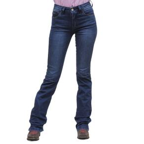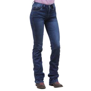 Calça Jeans Feminina na qualidade Cowboy Winner modelo Country, fabricada em tecido denim trabalhado na cor Azul, possui 3 bolsos na frente e 2 atrás em modelo tradicional, rebites de metal e botão personalizado.