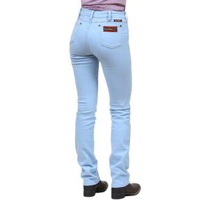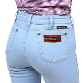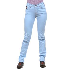Calça Jeans Feminina na qualidade Cowboy Winner, fabricada em tecido denim trabalhado na cor Delavê, possui 3 bolsos na frente e 2 atrás em modelo tradicional, rebites de metal e botão personalizado.