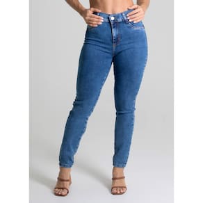 Calça feminina jeans heart. Modelagem coração, desenhada para valorizar o seu bumbum. Cintura média Fechamento com botão metálico e zíper Bolsos frontais falsos e bolsos traseiros funcionais Barra simples Modelagem: Heart Tecido: Jeans Tipo de lavagem: Azul Cor: Azul Médio