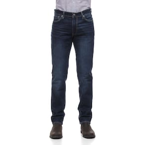 Calça jeans masculina Levi's modelo Slim fabricada em tecido 99% Algodão e 1% Elastano na cor Azul, possui 3 bolsos na frente e 2 atrás em modelo tradicional, rebites de metal e botão personalizado.
