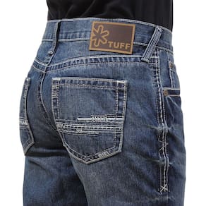 Calça jeans masculina da marca Tuff, confeccionada em algodão de alta qualidade, garantindo conforto e durabilidade. O modelo apresenta corte Boot Cut, com ajuste mais solto nas pernas e abertura ampla na barra, ideal para usar com botas. Os detalhes são o grande diferencial, com bordados personalizados nas costas e bolsos, adicionando um toque exclusivo e marcante ao visual. Os botões de metal também são personalizados, reforçando o estilo autêntico da marca e proporcionando um acabamento sofisticado.