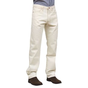 Uma Calça jeans Masculina da marca Wrangler modelo Cowboy Cut, perfeita para os cowboys que precisam de uma calça robusta para a vida no campo ou para o dia a dia da cidade. Esta fabricada em tecido 100% Algodão de alta qualidade na cor Bege, possui três bolsos na frente e 2 atrás em modelo tradicional, rebites de metal e botão personalizado.