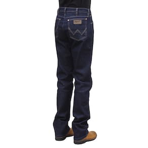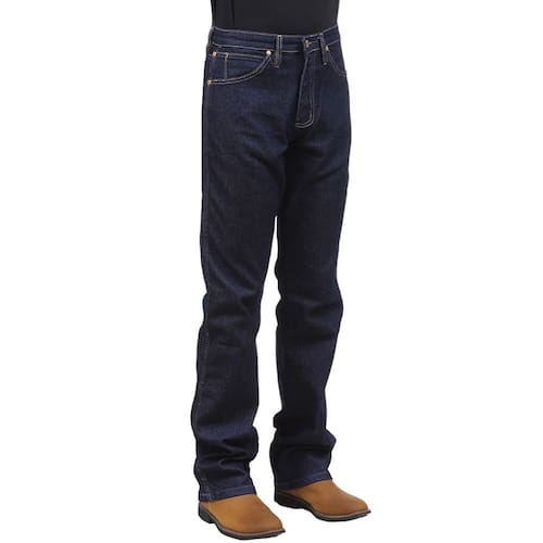Uma Calça jeans Masculina da marca Wrangler modelo Cowboy Cut, perfeita para os cowboys que precisam de uma calça robusta para a vida no campo ou para o dia a dia da cidade. Esta fabricada em tecido combinado de Algodão, Poliéster e Elastano de alta qualidade na cor Azul Escuro bastante discreto, possui três bolsos na frente e 2 atrás em modelo tradicional, rebites de metal e botão personalizado.