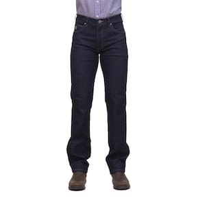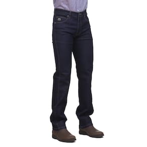 Calça jeans masculina na qualidade Os Vaqueiros, fabricada em tecido 74% Algodão, 24% Poliéster e 2% Elastano na cor Azul Escuro, possui 3 bolsos na frente e 2 atrás em modelo tradicional, rebites de metal e botão personalizado.