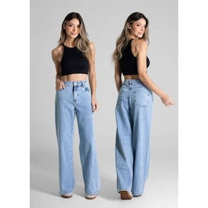 Calça feminina confeccionada em jeans. O modelo possui cintura super alta, gancho no lugar e caimento amplo da coxa até a barra. Cintura alta Fechamento através de um botão e zíper Bolsos frontais e posteriores funcionais Barra simples Tecido: Jeans Tipo de Lavagem: Azul Cor: Azul claro
