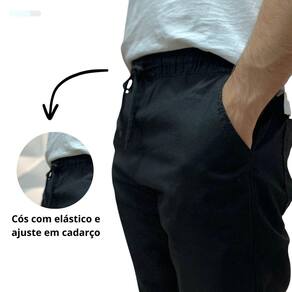 Esse modelo de calça jogger possui elástico e cordão no cós, para deixar o ajuste como desejar e se sentir livre.