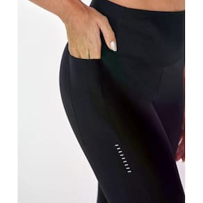 Para quem pratica exercício à noite, os refletivos são sinônimo de segurança, aqui estão desde a parte lateral, até as costas. A legging que tem boa cobertura e proteção UV, conta com bolsos laterais, ideais para guardar celular ou objetos pequenos. O cós proporciona visual mais longilíneo e compressão extra na parte do abdômen. - Refletivos