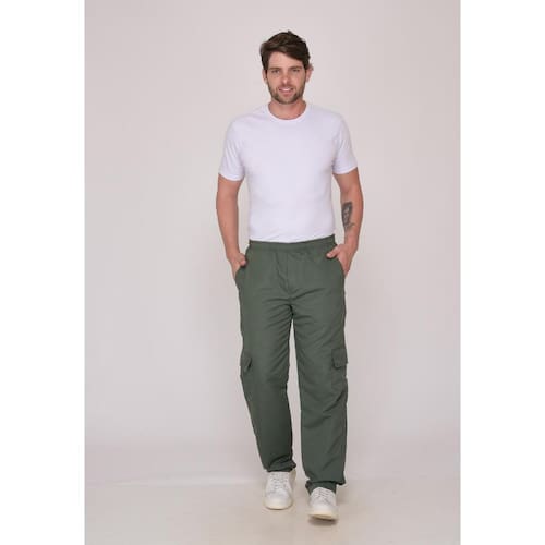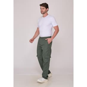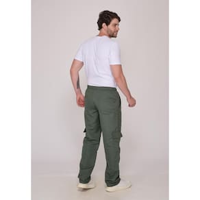 Calça em nylon com bolsos frontais, laterais e traseiros.