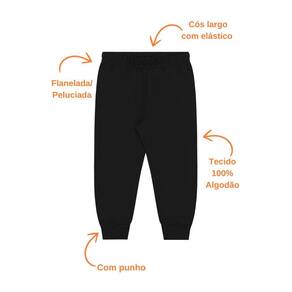 Calça Moletom Flanelado com Punho Infantil Menina Preto