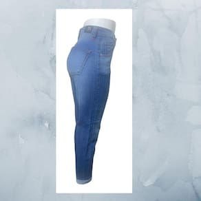 Calça Feminina Mom, confeccionada no tercido jeans, podendo fazer dobra nas barras, na cor azul. A Calça Mom pode ser usada com blazers, camisas sociais lisas e estampadas e também com tops. Cintura Alta. Fechamento com zíper e botão. Bolsos dianteiros e traseiros funcionais. Composição do Tecido: 100% Algodão