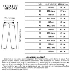 Fechamento com Botões Embutidos: A calça possui fechamento com botões embutidos, garantindo praticidade e segurança para o profissional, além de um visual mais sofisticado e funcional.
