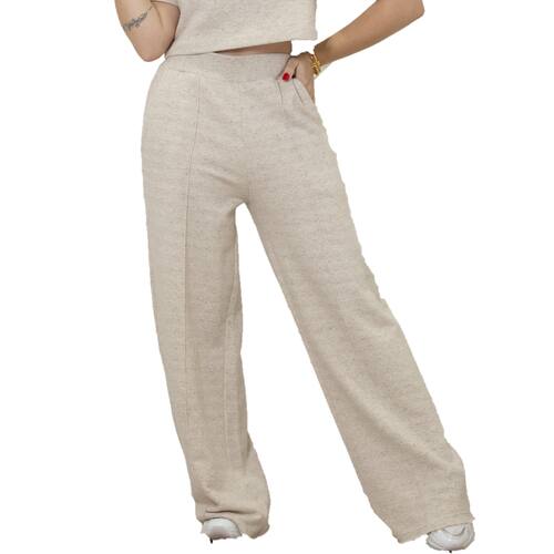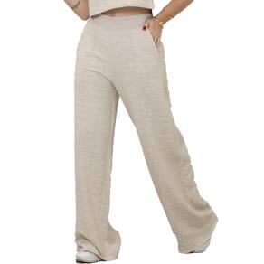 Calça Pantalona de moletinho com calça wide leg, tecido de moletinho, cor linho natural. Extremamente confortável, perfeito para o dia e para a noite, compõe um look casual perfeito para qualquer ocasião.