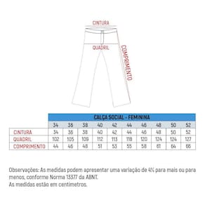 A CALÇA SOCIAL feminina é produzida em OXFORD.