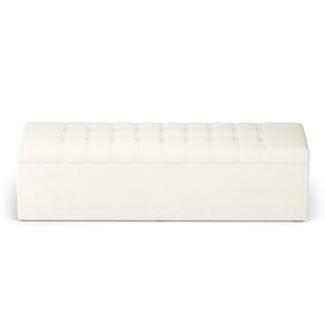 Características do Produto Madeira de eucalipto proveniente de reflorestamento Fixação com grampos galvanizados Espuma Poliuretano D20 Revestimento: Bouclê Cor: Off White Tamanho: King para cama box de 193 cm Possui pés: Sim Tipo de pés: 4 Sapatas Possui baú interno Embalagem: Plástico bolha, papelão ondulado, malha, plástico Garantia de 3 meses contra defeitos de fábrica. Ean: 7798945820496